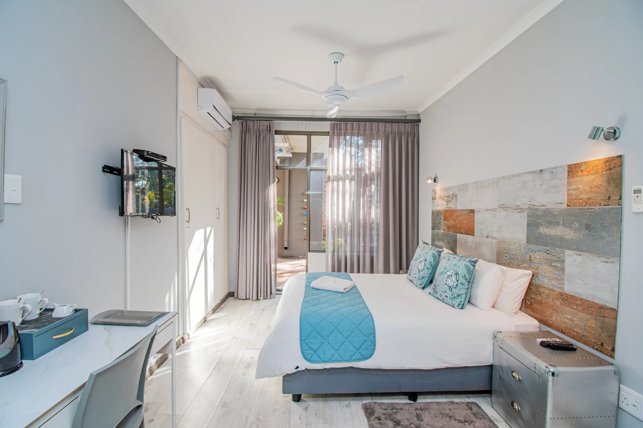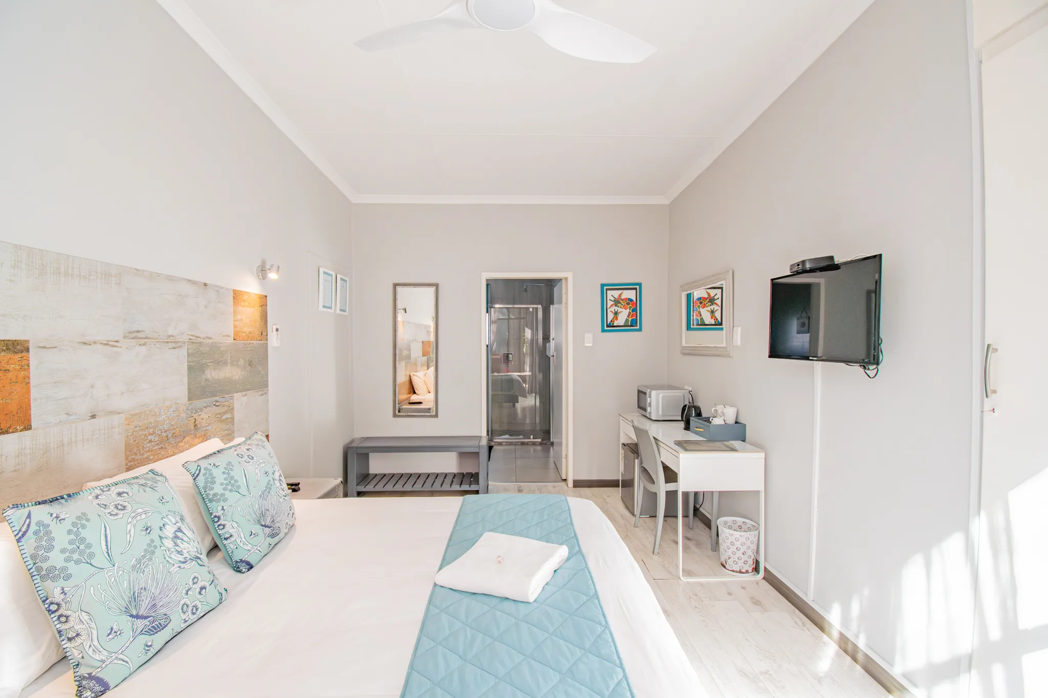 This comfortable room offers one Queen size bed, coffee and tea making facilities, microwave, small fridge, air-conditioning and TV. The en-suite bathroom has a shower and bath with separate toilet. Ideal for solo travellers or two people.
